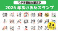 日々イラストを描いてアップしているイラストACでダウンロードができる、2026年 筆文字メッセージ年賀状の素材をアップしました。ぜひご活用ください。