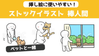ストックイラスト 【第12弾】犬猫ペットがいる光景 棒人間イラスト – ストックイラストのご紹介⑫